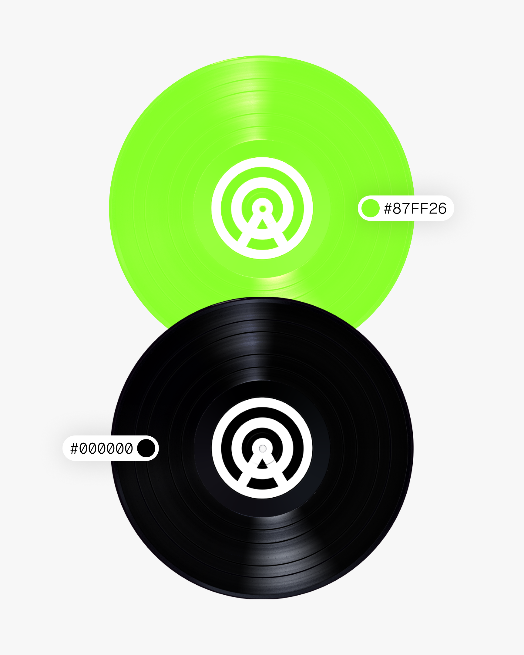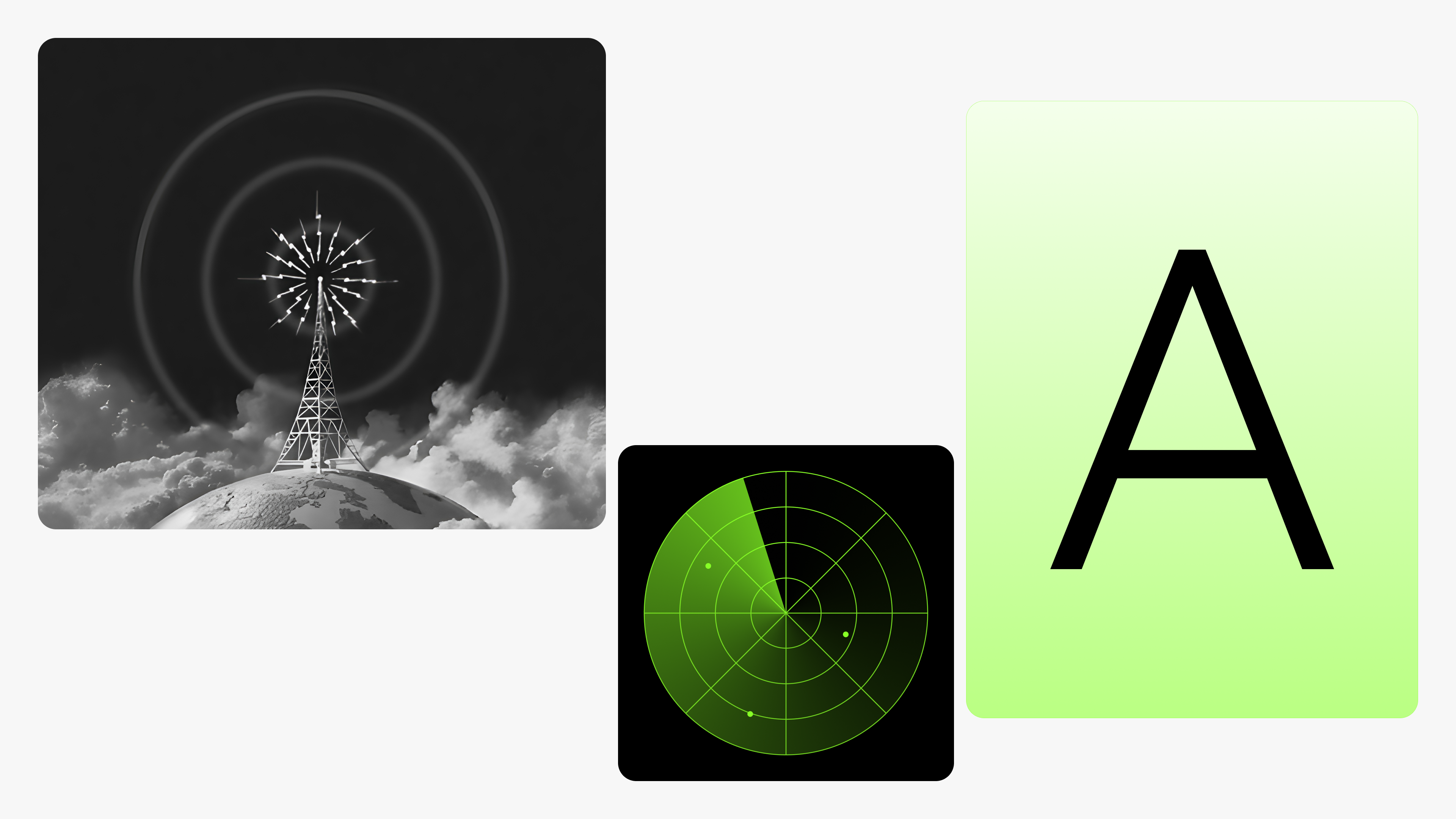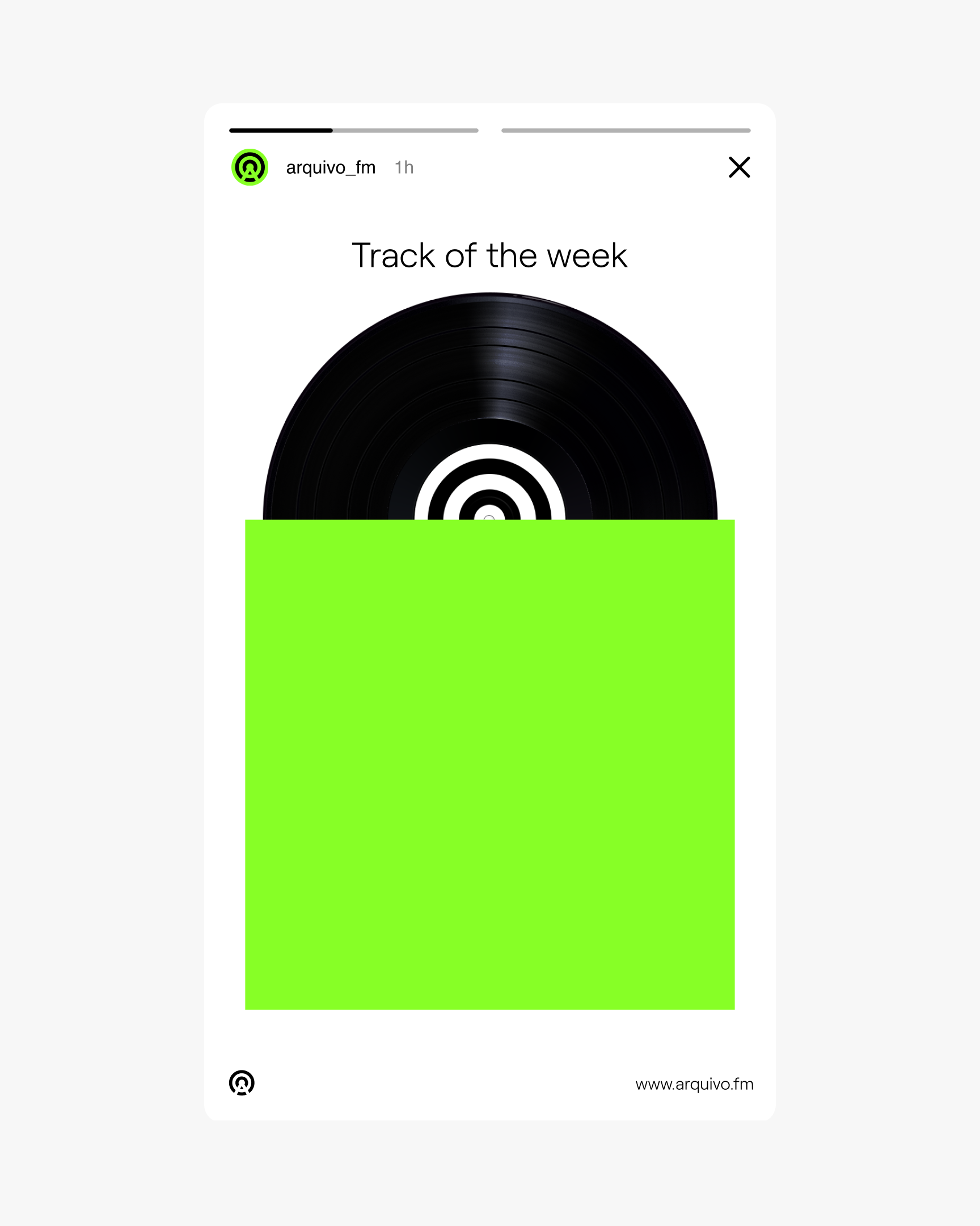 La idea de buscar (radar) y transmitir (torre de radio) música se combina con la inicial del nombre para crear el icono que lo represente. Esto junto al un verde vibrante, el color negro y las tipografías conforman las bases de la identidad visual